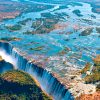 Desayuno. Salida para realizar una visita guiada de las Cataratas Victoria. Conocidas como el «humo que truena», fueron declaradas Patrimonio de la Humanidad en el año 1989. Tienen una anchura de aproximadamente dos kilómetros y miden 108 metros de alto, el doble que las Cataratas del Niágara. Regreso al hotel. Por la tarde, traslado al embarcadero para realizar un crucero por el río Zambeze y disfrutar de la espectacular puesta de sol. A bordo, se servirán bebidas y aperitivos. Regreso al hotel. Alojamiento.